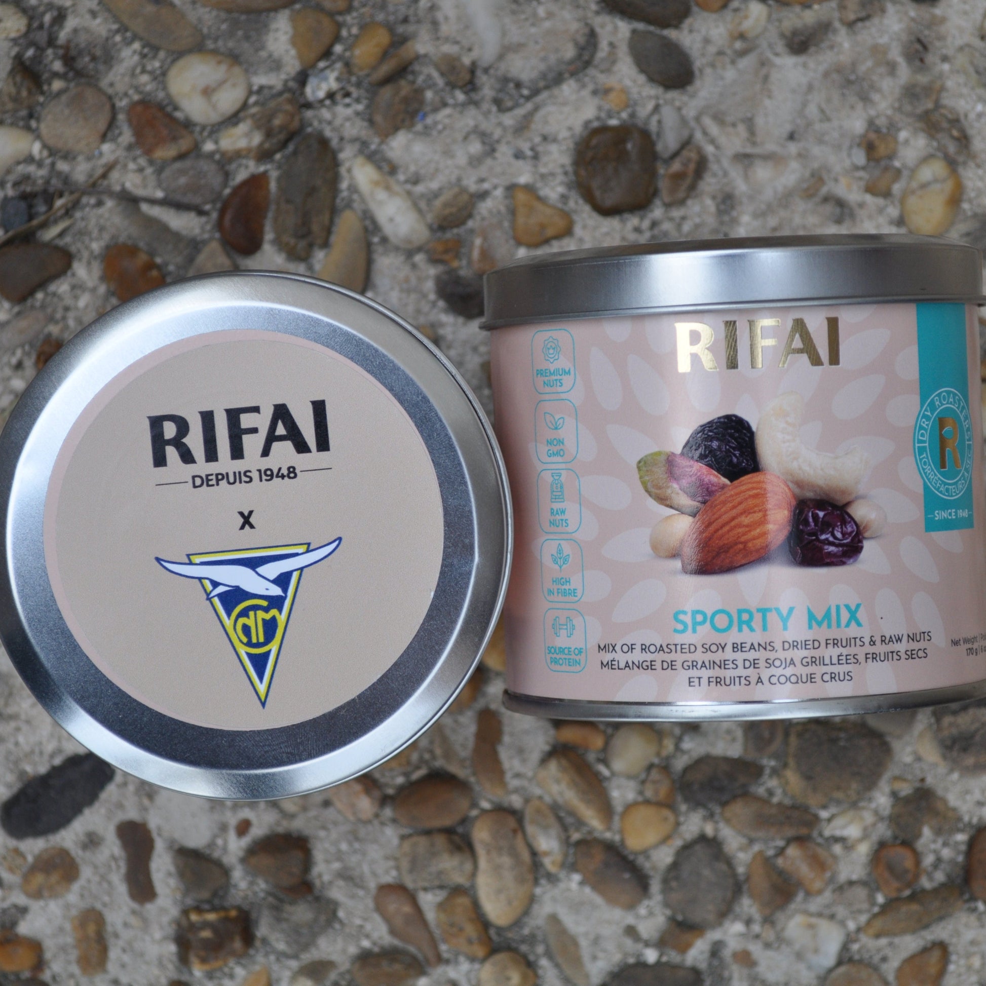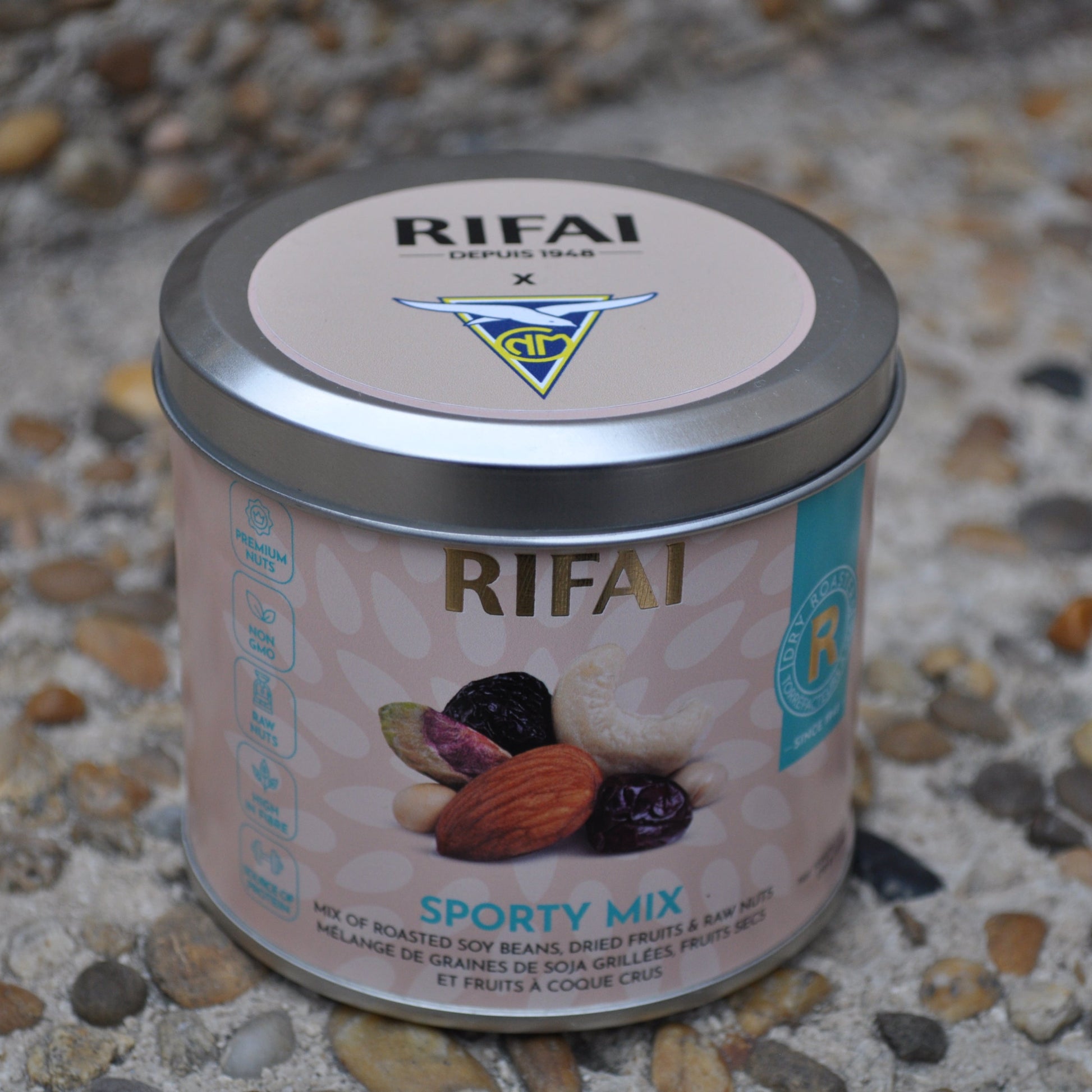 Le carburant naturel des champions by RIFAI. Que ce soit pour booster votre petit-déjeuner avant une séance de natation ou pour récupérer après un entraînement intensif, ce mélange "Sporty" est l’en-cas sain par excellence. Présenté dans sa boîte métal exclusive, ce cocktail de fruits secs et de noix crues a été sélectionné pour offrir aux membres du Cercle une énergie durable et une gourmandise sans compromis. Le réflexe vitalité à glisser dans tous les sacs de sport !